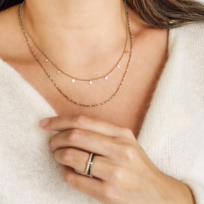 Bague plaqué or avec céramique et zirconias taille 50 à 64