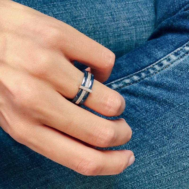 Bague argent et céramique avec zirconias taille 50 à 68