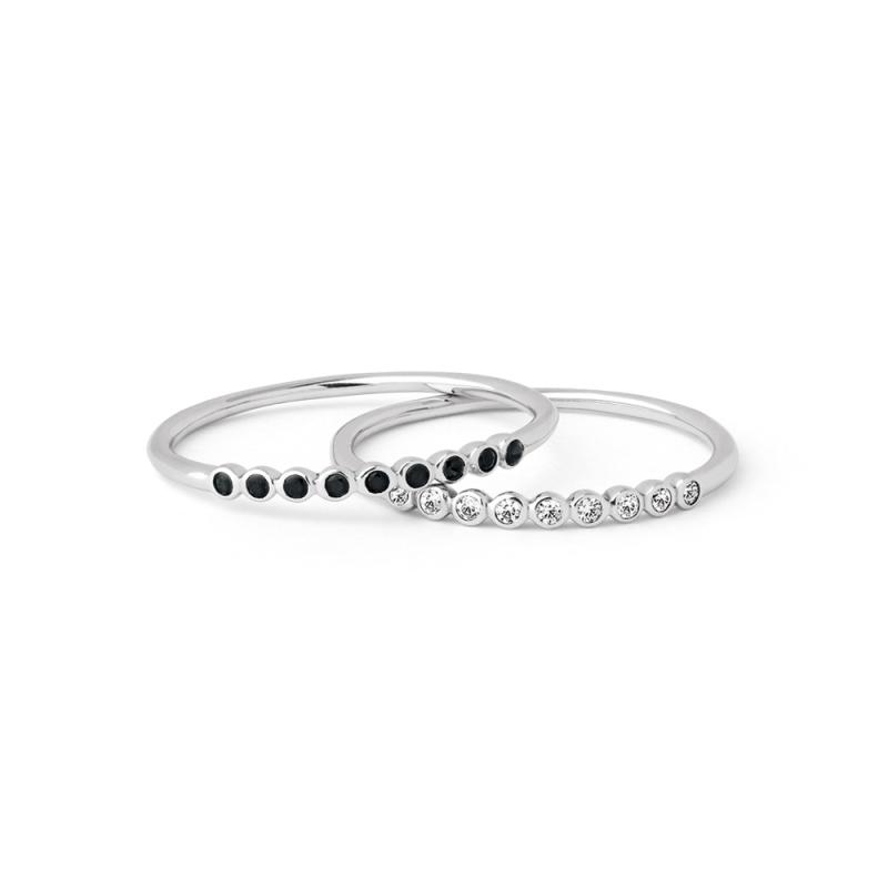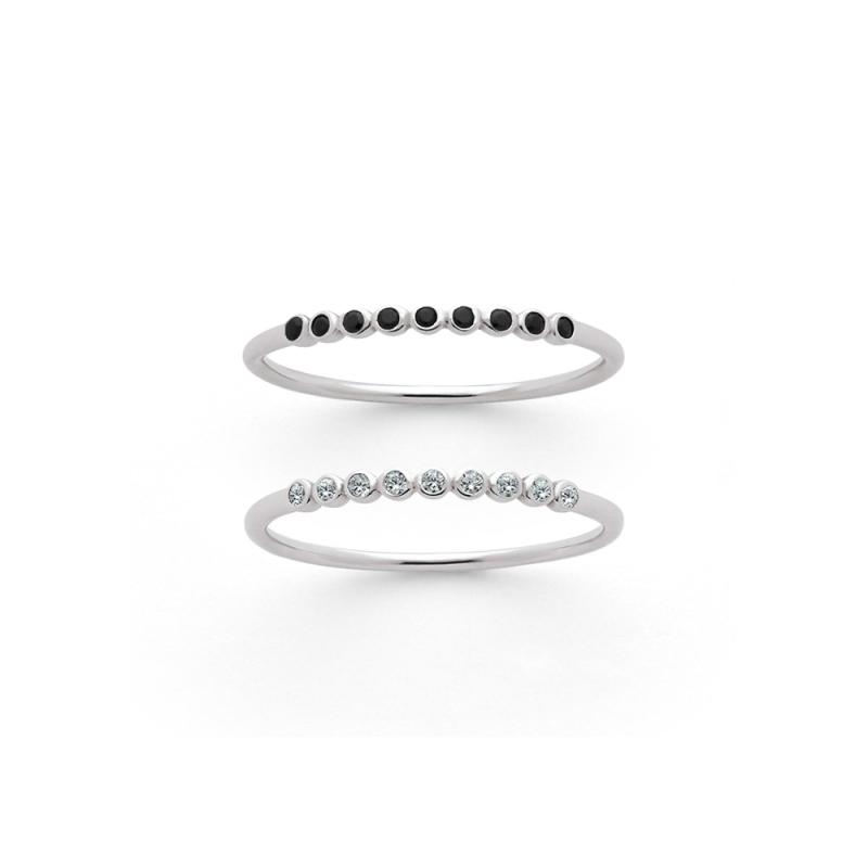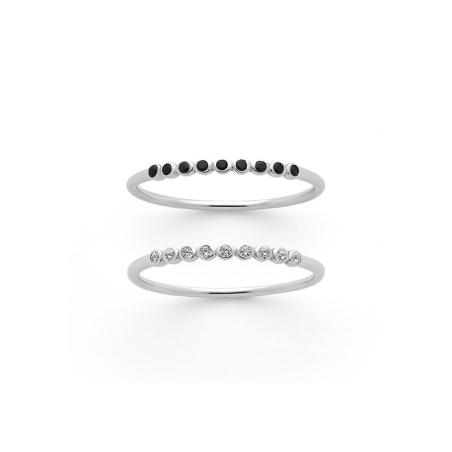 Cet ensemble de 2 bagues fines en argent habillera superbement vos doigts au quotidien. La première bague est agrémentée de zirconias noirs et la deuxième de zirconias blancs. Faits en argent, ces anneaux de la collection Subtilité sont proposés en plusieurs tailles de 50 à 64.