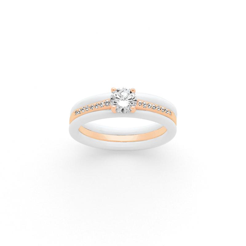 Bagues plaqué or rose et céramique avec zirconias taille 50 à 64