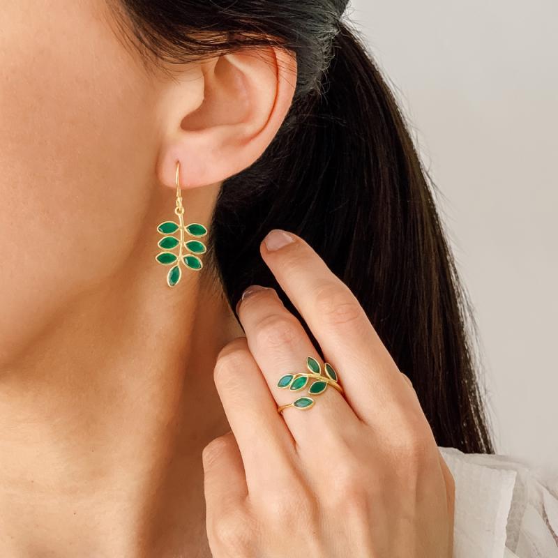 Bague dorée avec onyx vert taille 52 à 64