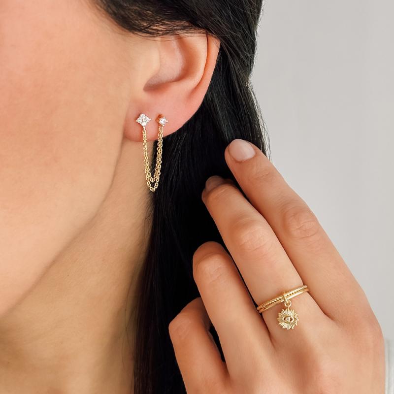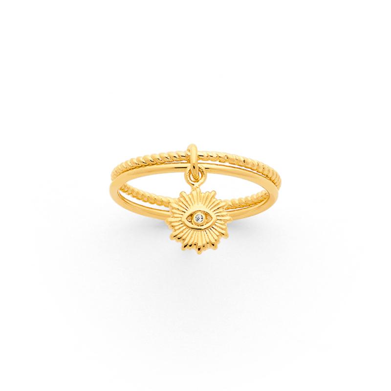 Bague double anneaux dorées avec zirconia taille 52 à 60