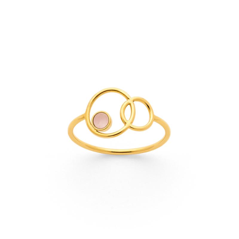 Bague acier doré avec quartz rose taille 50 à 60