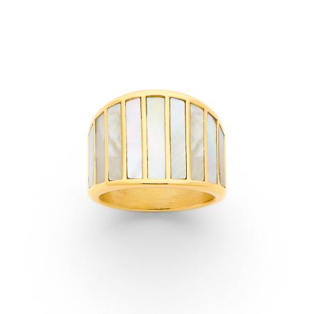 Bague acier doré avec nacre taille 52 à 64