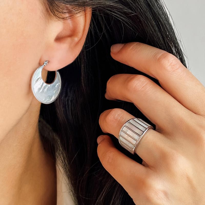 Bague acier avec nacre taille 52 à 64