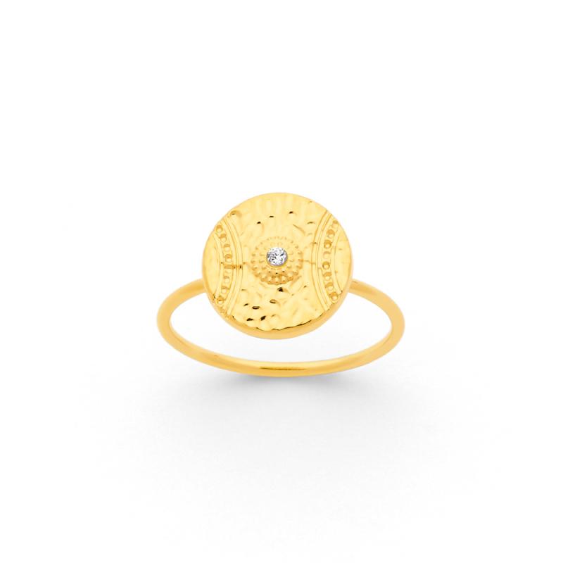 Bague acier doré avec cristal taille 50 à 62