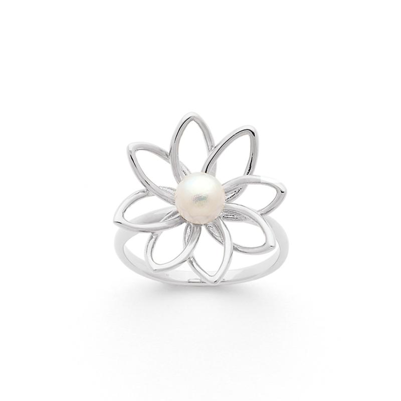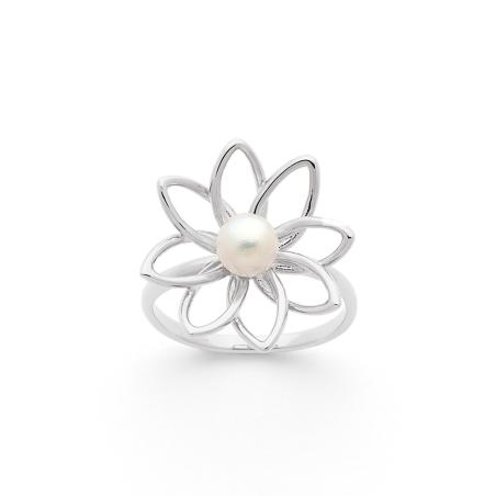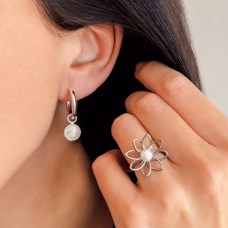 Bague acier avec perle de culture d'eau douce taille 52 à 64