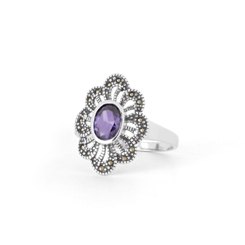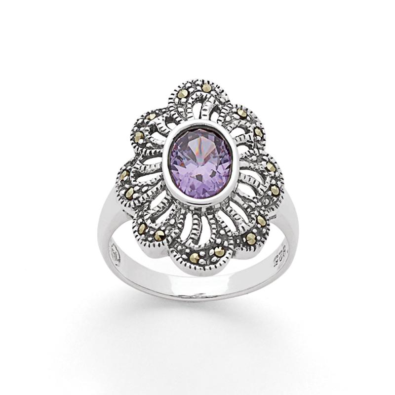 Bague argent avec zirconia et marcassite taille 52 à 64