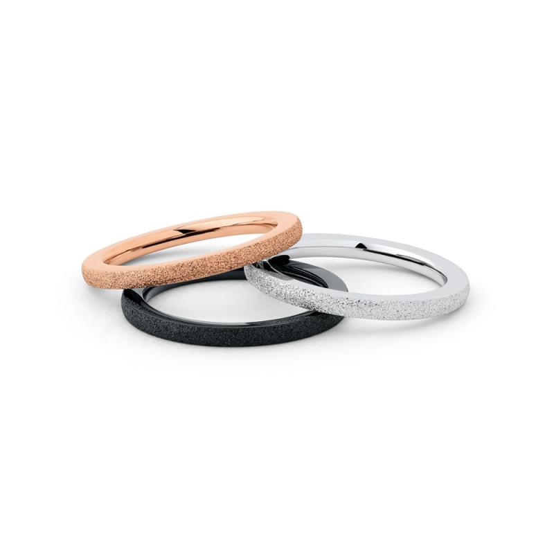 Pour être tendance et glamour, choisissez cet ensemble de 3 bagues en acier de la collection Trio. Le style et la taille de chaque anneau sont les mêmes, mais c'est la couleur qui change. Noir, rose ou simplement couleur acier amusez-vous avec ces trois anneaux en les combinant selon votre humeur. Ce trio est disponible de la taille 50 à 64.