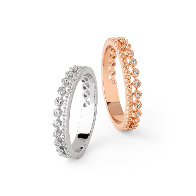 Avec la bague de la collection Princesse vous aurez l'impression de porter 2 bagues en une. En effet le design de cette bague offre l'illusion de 2 anneaux différents. L'un finement ciselé et l'autre serti de zirconias s'associent parfaitement pour un rendu élégant. La bague est disponible de 50 à 64.