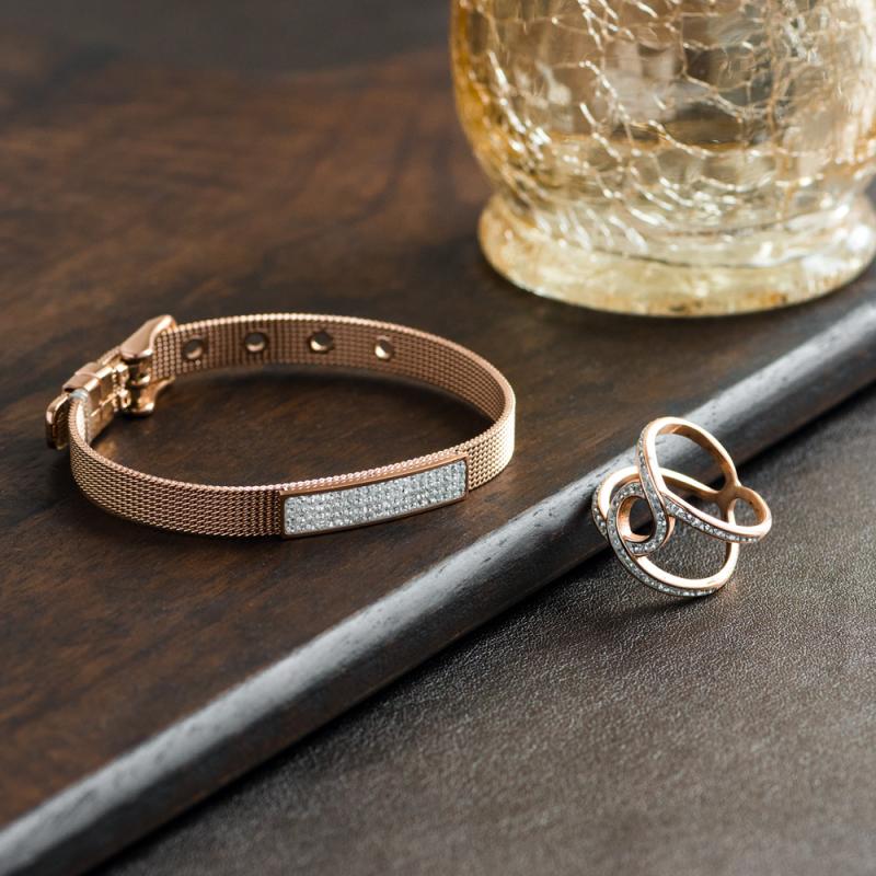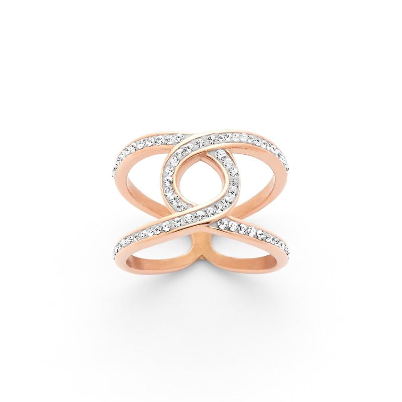 Les femmes modernes apprécieront cette bague en acier rose agrémentée de pierres de cristal de la collection Euphorie. Les entrelacs de cette bague lui donnent de l'originalité. Très fine, cette bague apportera beaucoup de légèreté et se portera très facilement l'été. Elle est disponible de la taille 52 à 60.