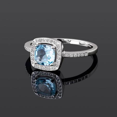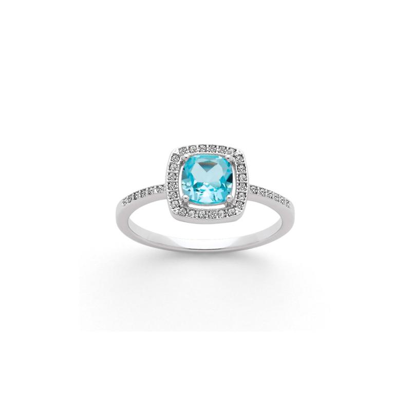 Bague argent avec topaze bleue et zirconias taille 50 à 64