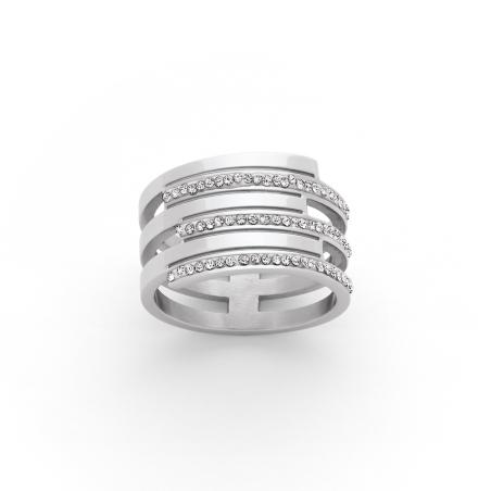 Réhaussez votre look avec cette bague sertie de 3 rangées de cristaux étincelants. Cet anneau de la collection Orage agrémentera avec style et élégance votre main. Cette bague sera parfaite portée au quotidien ou lors d'occasions spéciales. L'acier inoxydable lui confère une touche très moderne. Cette bague est disponible de la taille 52 à 62.