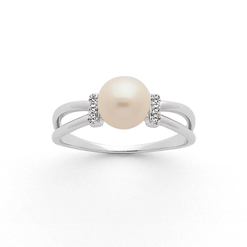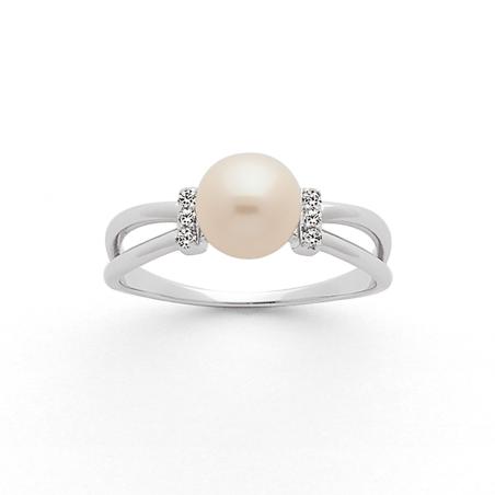 Bague argent avec zirconias et perle de culture taille 50 à 64