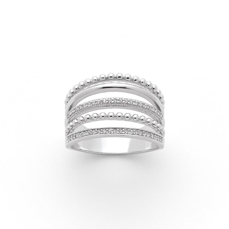 Les cinq rangs de cette bague en acier et zirconias offrent un joli volume et une belle largeur. Chaque rang de cette bague est travaillé différemment pour un résultat surprenant et peu singulier. Disponible de la taille 52 à la taille 62, cette bague sera l'élément central de votre look.