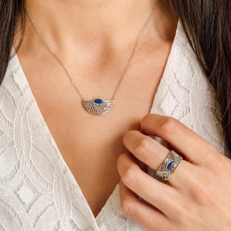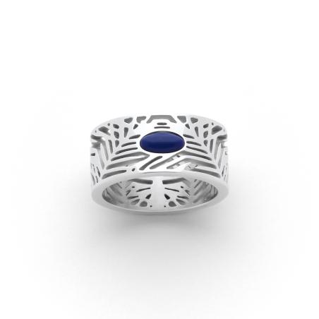 Coup de cur pour cet anneau en acier de belle largeur travaillé finement pour créer un motif moderne et tendance qui plaira aux femmes actives et dynamiques. Le lapis-lazuli central apporte une touche de couleur très rafraîchissante pour cet été. La bague est disponible de la taille 52 à 62.