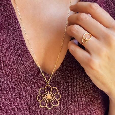 La bague Unia porte bien son nom puisqu'elle sera sans doute le reflet de vos sentiments. Les deux cercles entrelacés et inséparables sont à l'image du couple que vous formez avec l'être aimé, pour en faire une union indéfectible. Cette bague en plaqué or est disponible en plusieurs tailles de 50 à 64.