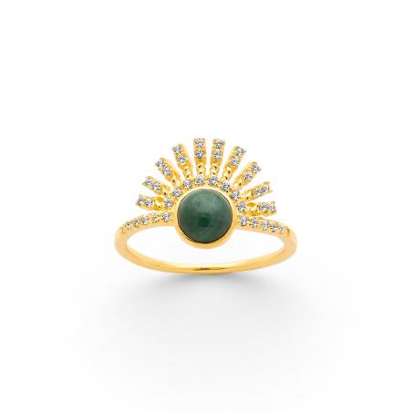 Bague plaqué or avec jade et zirconias taille 54 à 60