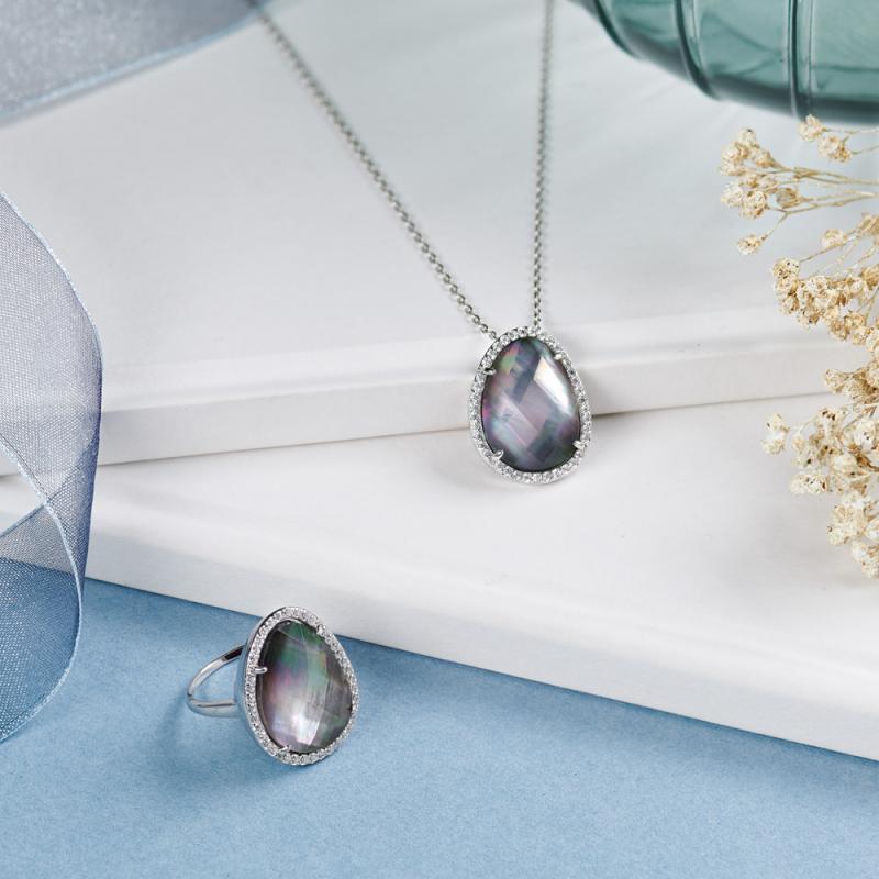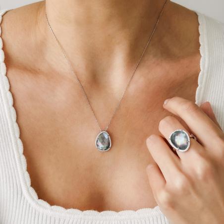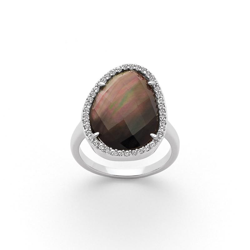 Bague argent avec zirconias et nacre grise taille 52 à 62