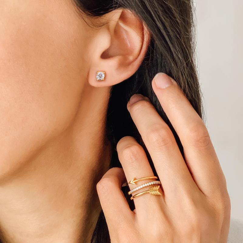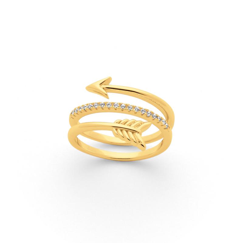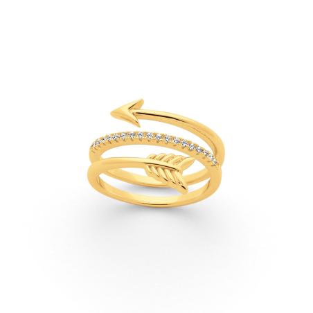 Cupidon a-t-il encore fait une nouvelle victime ? Si vous portez cette bague plaqué or en forme de flèche enroulée autour de votre doigt, c'est que vous avez été touchée par l'amour. Les zirconias sertis offrent une finition raffinée et le travail soigné sur les extrémités de la flèche apporte un réalisme étonnant. La bague est disponible de la taille 52 à 62.