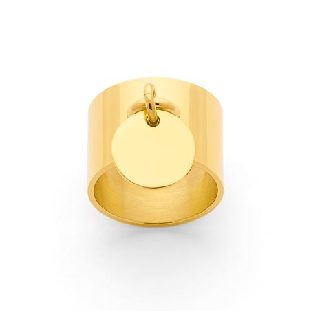 Cette maxi bague Nour en acier doré avec une pastille en breloque féminise vos gestes à coup sûr. Elle est remarquablement brillante et vous ira à merveille si vous aimez le duo ethnique et chic. Cette bague est disponible de la taille 52 à la taille 64.