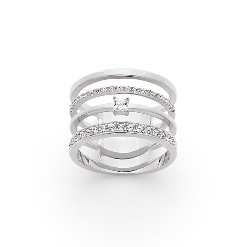 Laissez vous inspirer par cette bague au design surprenant. Ce bijou est composé de 4 anneaux séparés chacun d'un espace, mais indissociables pour autant. Sur le doigt elle sera du plus bel effet et fera beaucoup parler. Cette bague est disponible de la taille 52 à 62.