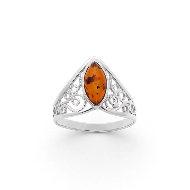 Bague argent avec ambre taille 52 à 64