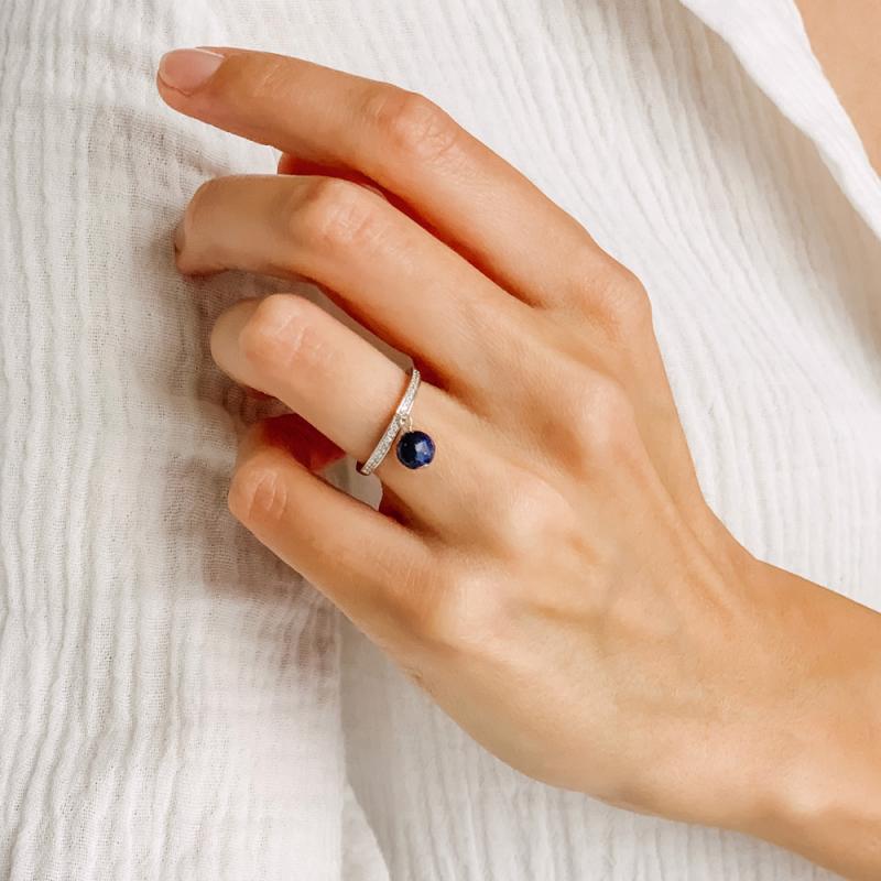 Bague argent avec lapis-lazuli et zirconias taille 50 à 60