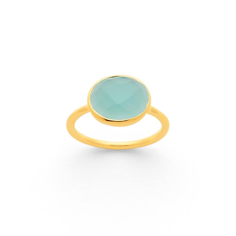 Bague dorée avec calcédoine bleue taille 52 à 62