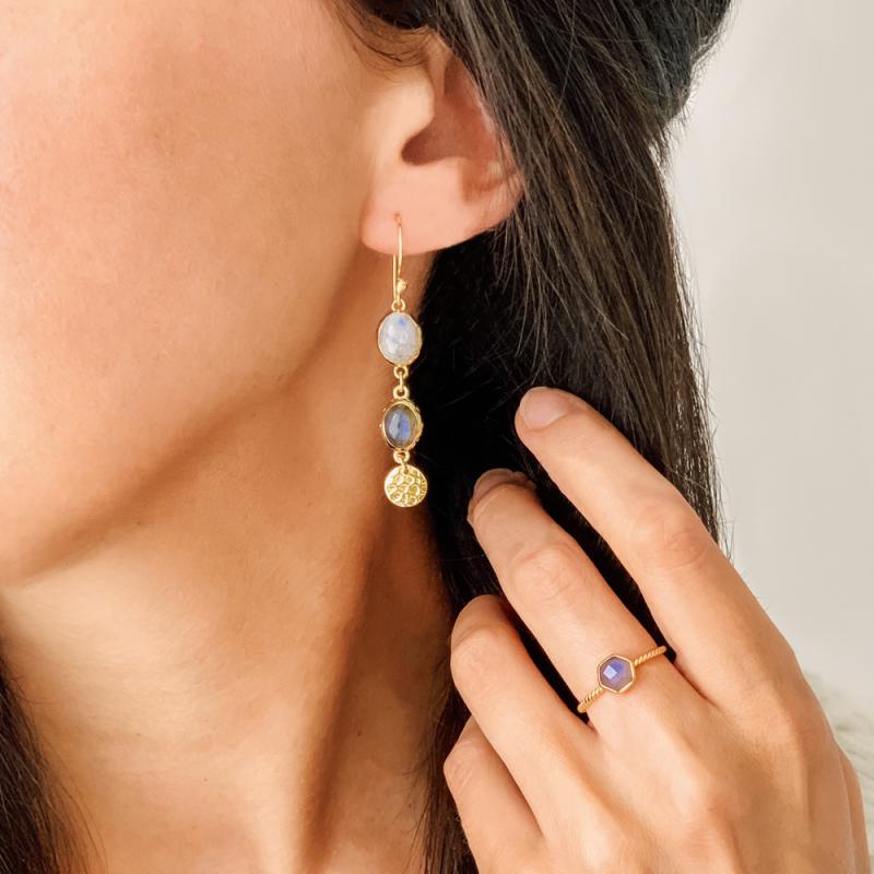 Bague dorée avec labradorite taille 50 à 62