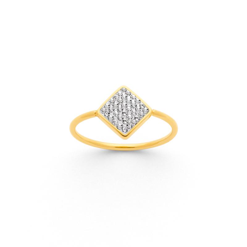 Bague acier doré avec cristal taille 52 à 62