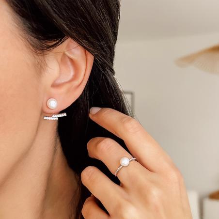 Bague argent avec zirconias et perle de culture taille 50 à 62