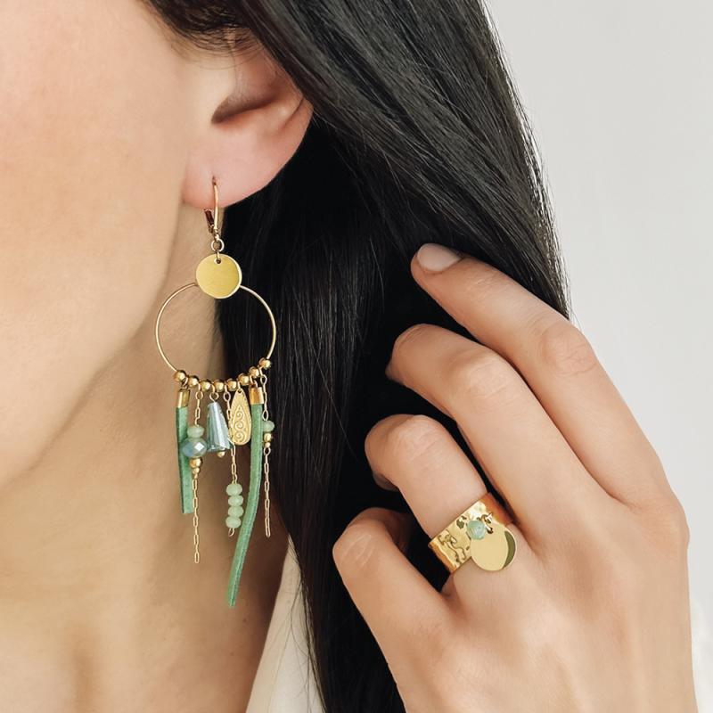 Bague acier doré avec aventurine taille 50 à 64