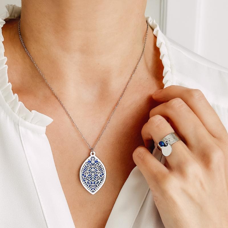 Bague acier avec lapis-lazuli taille 50 à 64