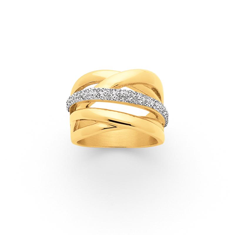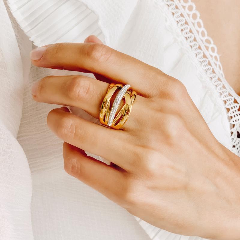 Bague acier doré avec cristal taille 52 à 68