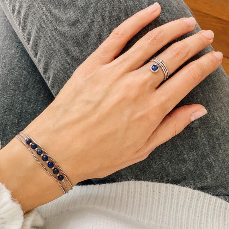 Bague triple anneaux argent avec lapis-lazuli taille 52 à 62