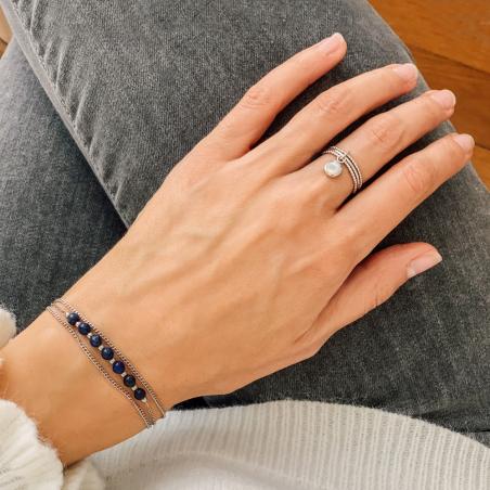 Bague triple anneaux argent et nacre taille 52 à 62