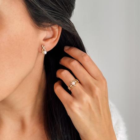 Bague plaqué or avec perle de culture et zirconias taille 52 à 64