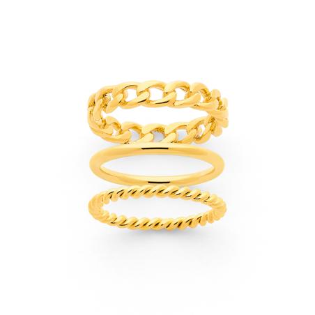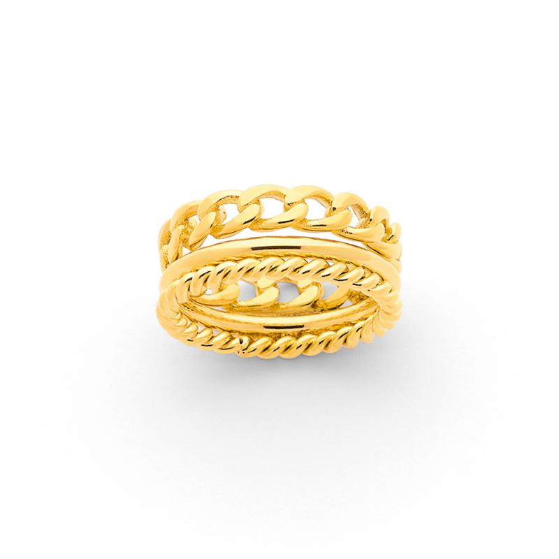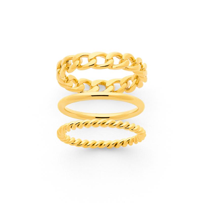 Ensemble de 3 bagues acier doré taille 50 à 68