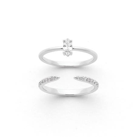 Ensemble de 2 bagues argent avec zirconias taille 50 à 64