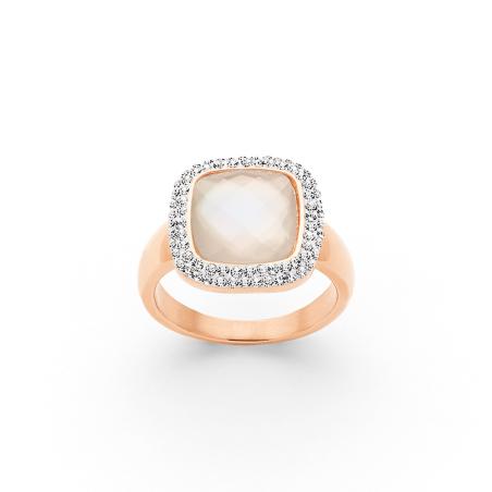 Bague acier rose avec nacre et cristal taille 52 à 68