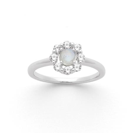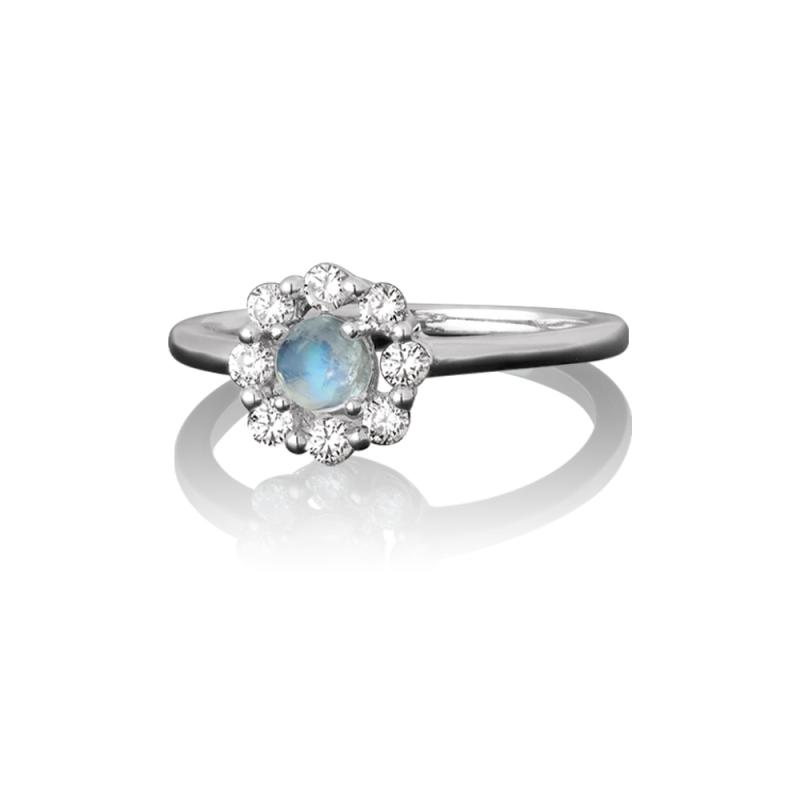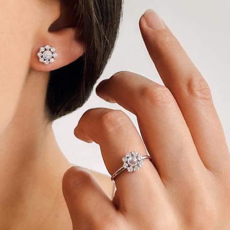 Bague argent avec pierre de lune et zirconias taille 50 à 62