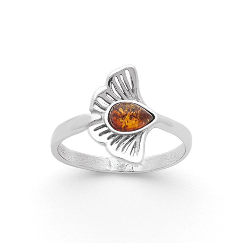 Bague argent avec ambre taille 50 à 60
