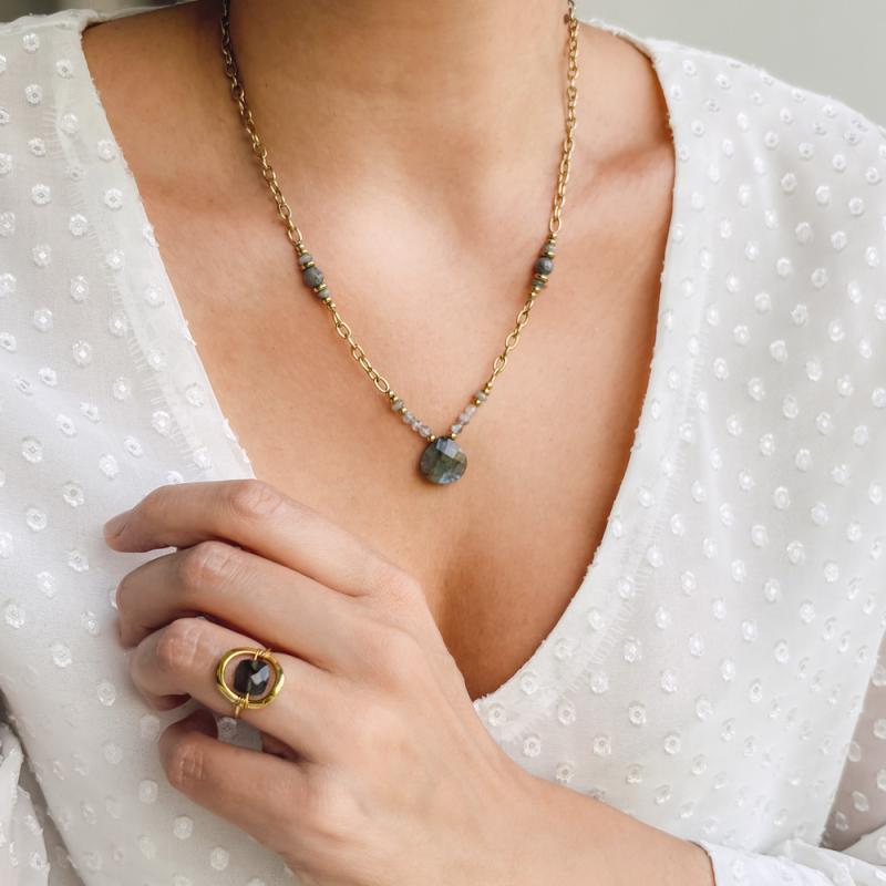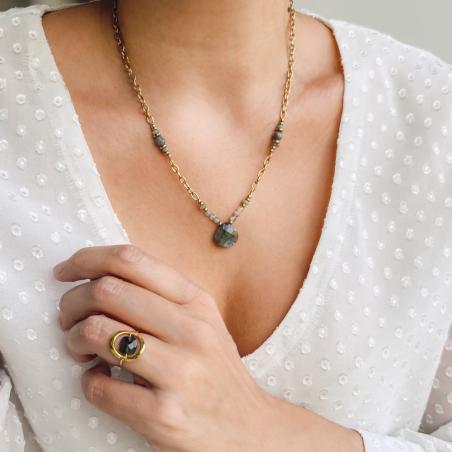 Bague dorée avec labradorite taille 50 à 64