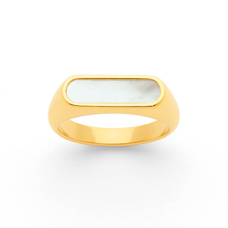 Bague acier doré avec nacre taille de 52 à 62