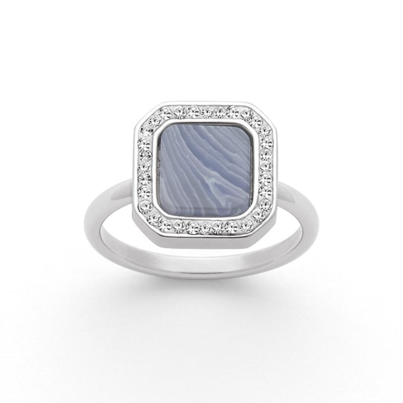 Bague acier avec agate bleue et cristal taille 52 à 62