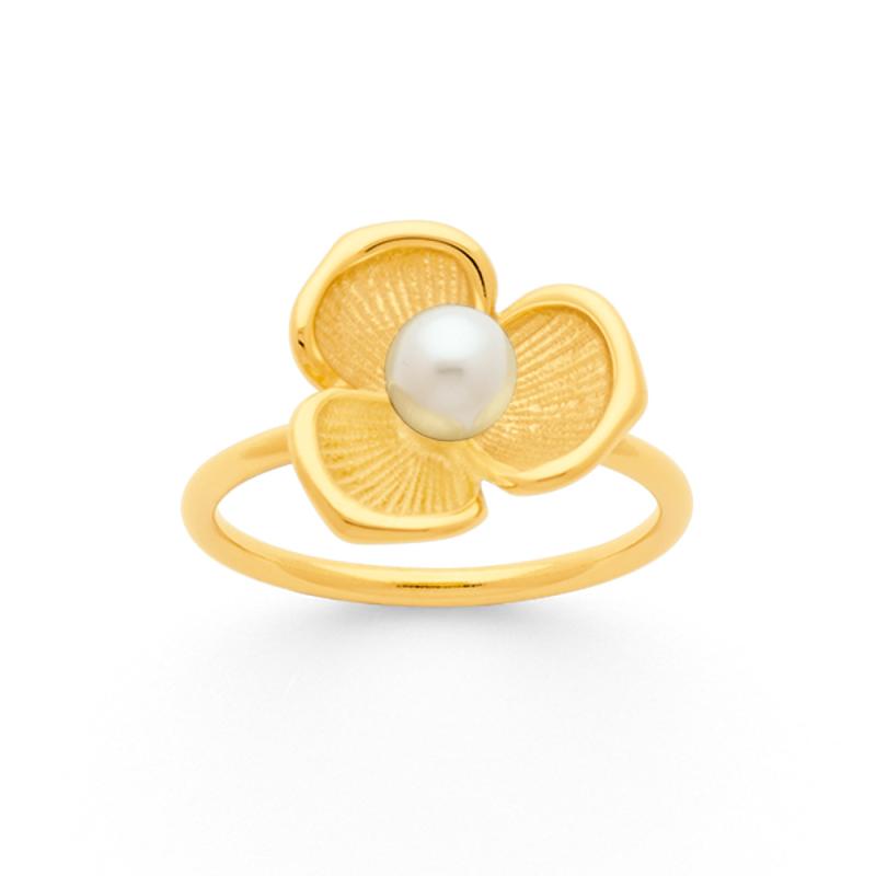 Bague acier doré avec nacre taille 50 à 60