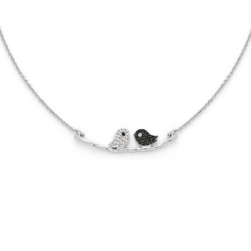 Ce collier en argent 925 millièmes de la collection Inséparable adopte un style unique et romantique. Son pendentif est joliment composé de deux petits oiseaux placés face à face et ornés de zirconias noirs et blancs. La longueur de la chaîne est réglable de 40 à 45 cm.