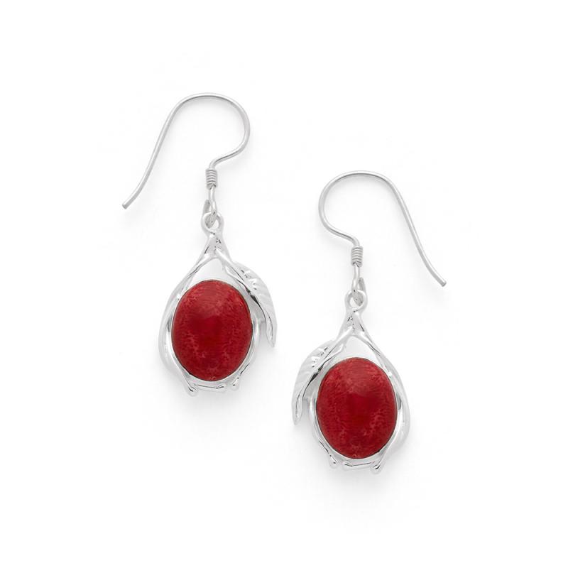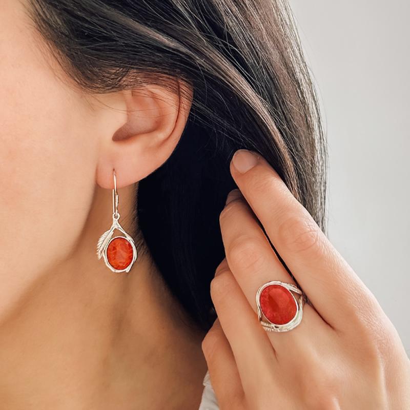 Boucles d'oreilles argent avec corail gorgogne