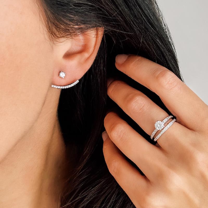 Vous êtes à la recherche d'un bijou qui vous ressemble, à la fois sobre, mais élégant ? Les boucles d'oreilles argent et zirconias de la collection Entre Nous sont faites pour vous. Elles sont composées d'un clou agrémenté d'un zirconia étincelant et d'une tige qui fera apparaître au bas du lobe une rangée de zirconias tout aussi étincelante.